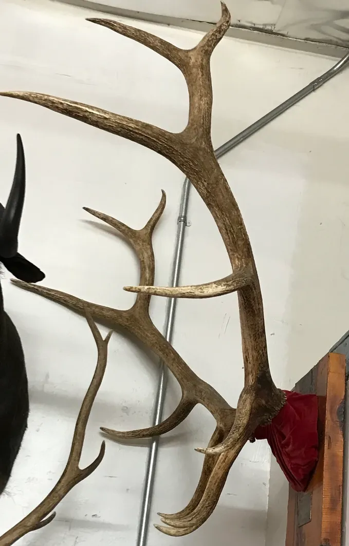 Taxidermy elk antler rack with red velvet