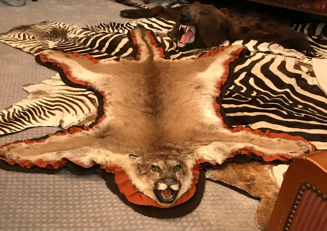 Taxidermy mountain lion rug