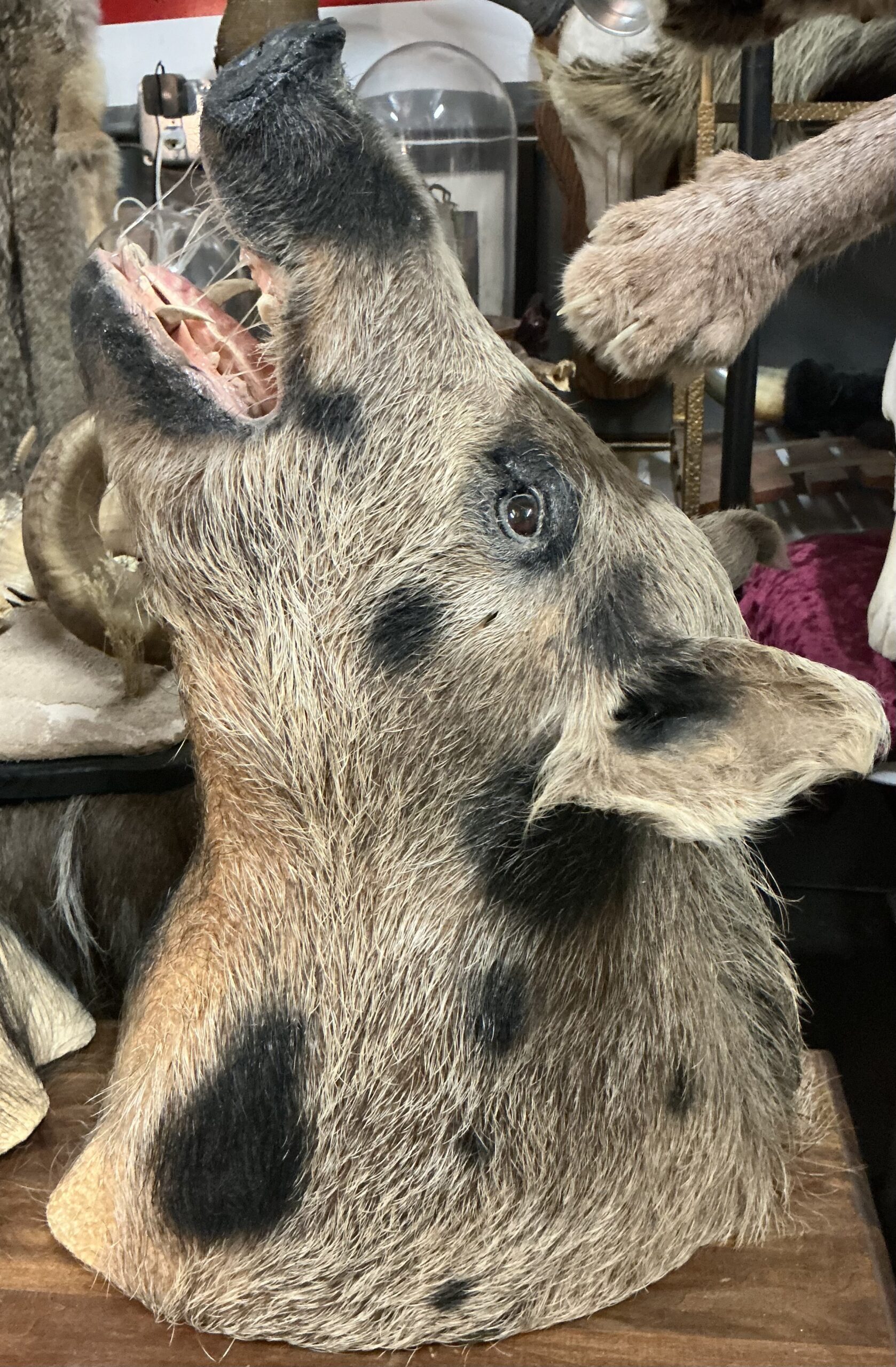 THIS TAXIDERMY SPOTTED PIG WALL MOUNT IS LOVED BY ALL WHO SEE HIM. READY TO HANG.